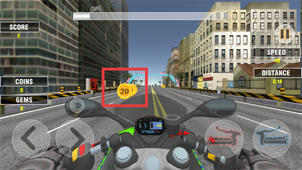 3、行驶时,尽量收集道路上的金币,积累游戏资源。