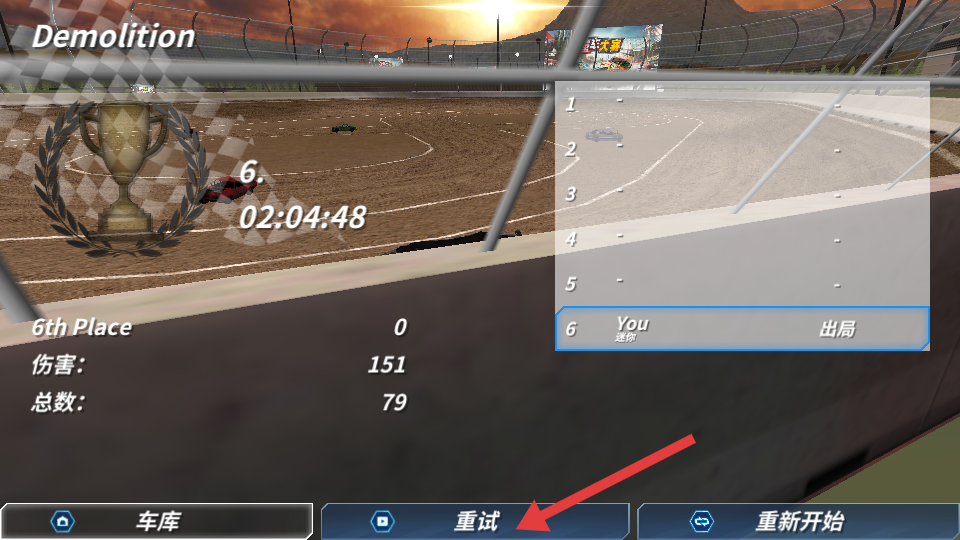 4、比赛结束后,若成绩不满意,点击【重试】按钮,重新开始比赛。