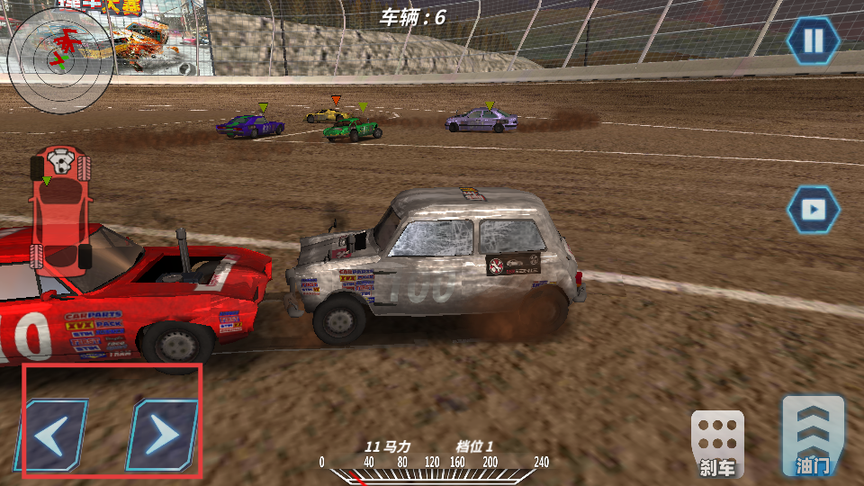 3、用左侧方向按钮操控车辆转向,在赛场中与其他车辆碰撞,制造伤害。