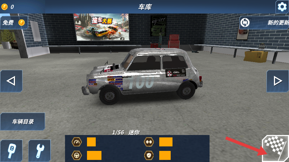 1、在车库界面,点击右下角方格旗图标,进入游戏。