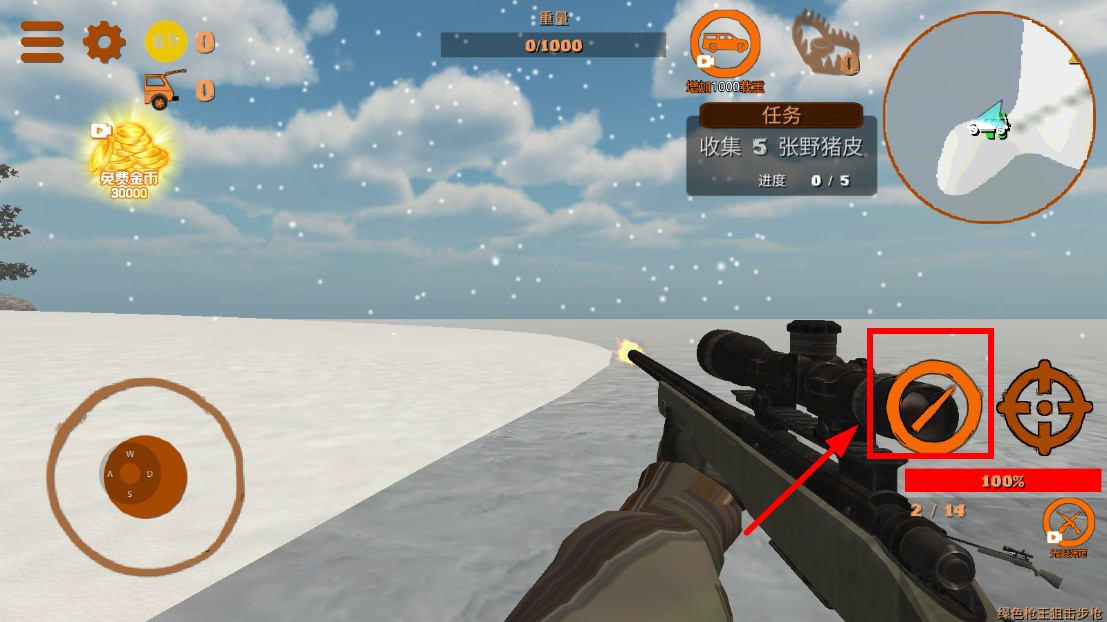 4、发现猎物后,点击瞄准图标,精准射击,完成狩猎任务(如收集野猪皮)。