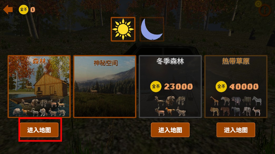 1、点击【开始狩猎】,进入地图选择界面,挑选森林等场景开启狩猎。