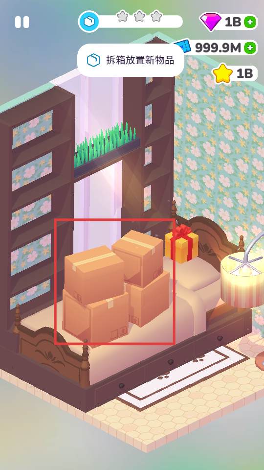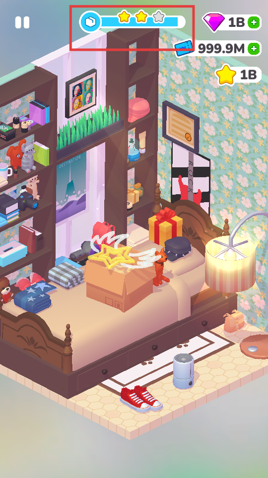 4、完成物品布置后,可获得星级评价,继续优化场景以提升星级。