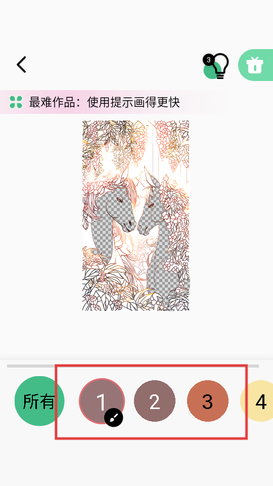 4、填色过程中,若遇到困难,点击提示按钮,借助提示更高效地完成填色。