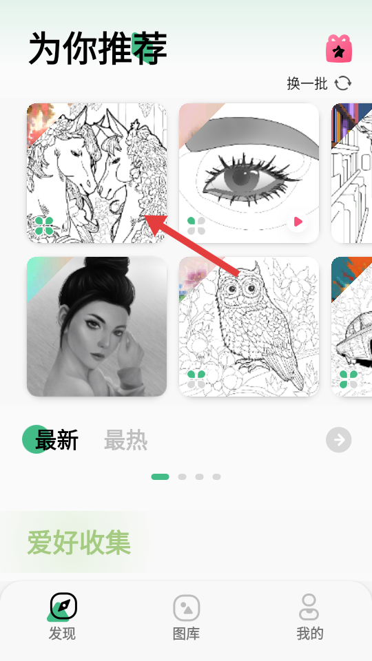 1、在游戏首页选择喜欢的图案,进入填色界面。