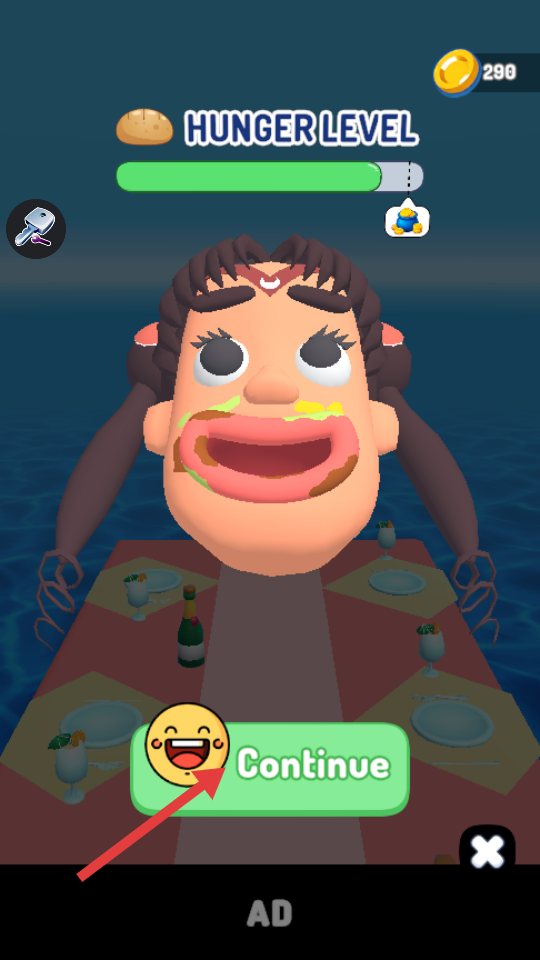 4、当角色吃完食物后,点击【Continue】按钮,继续进行下一个环节。