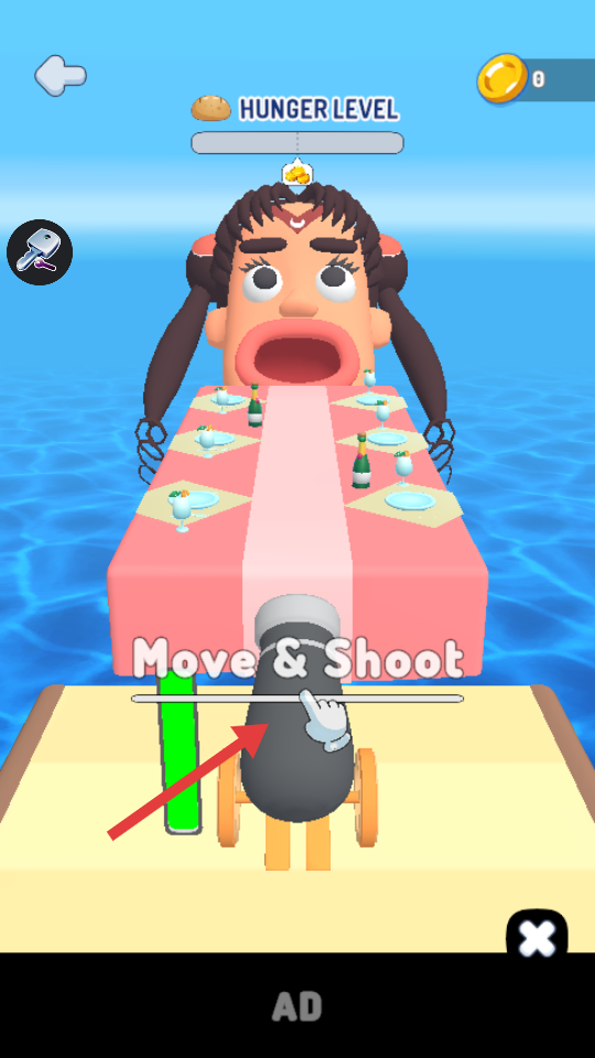 3、到达终点区域后,按照【Move&Shoot】的提示,操控装置移动并发射食物。