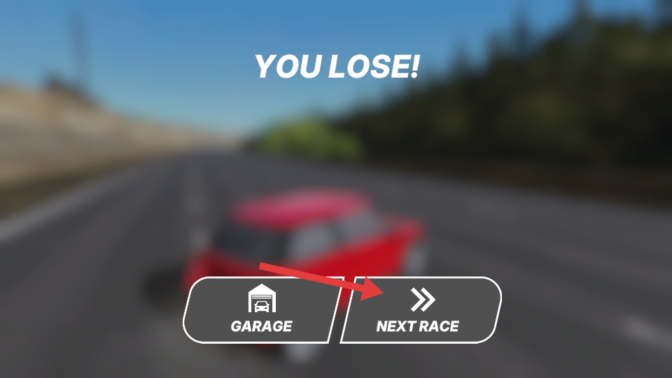 4、若比赛失败,点击【NEXT-RACE】按钮,重新参与下一场赛车比赛,争取更好成绩。