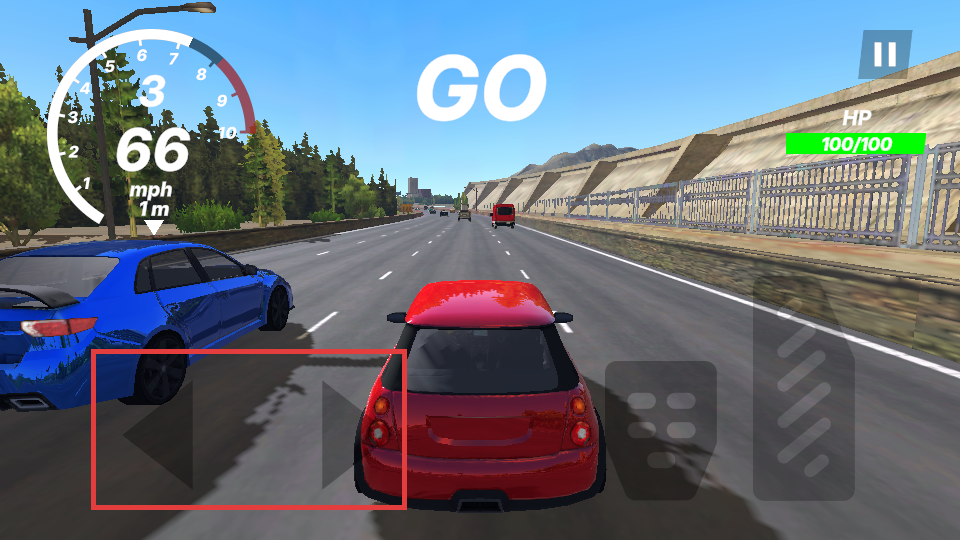 3、通过左侧方向按钮,调整红色车辆行驶方向,躲避障碍,追赶前方蓝色车辆,保持竞速节奏。