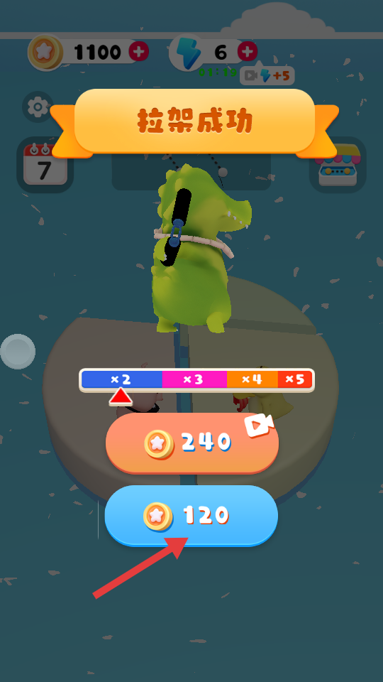 4、拉架成功后,点击蓝色按钮,领取120金币奖励。