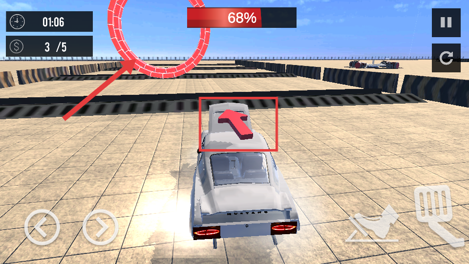 3、沿着箭头指示方向驾驶车辆,穿过红色圆环,推进关卡进度。