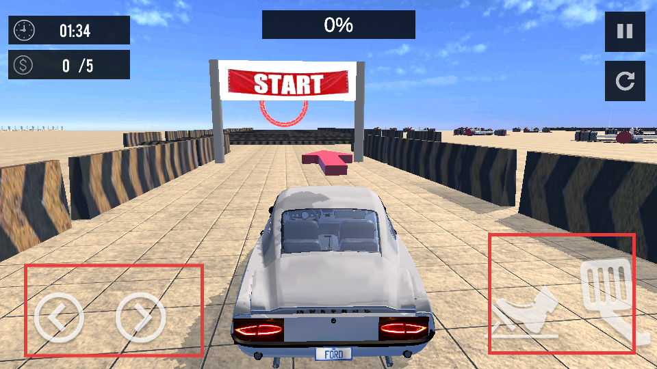 2、使用左侧左右箭头控制车辆方向,右侧油门和刹车控制车速。