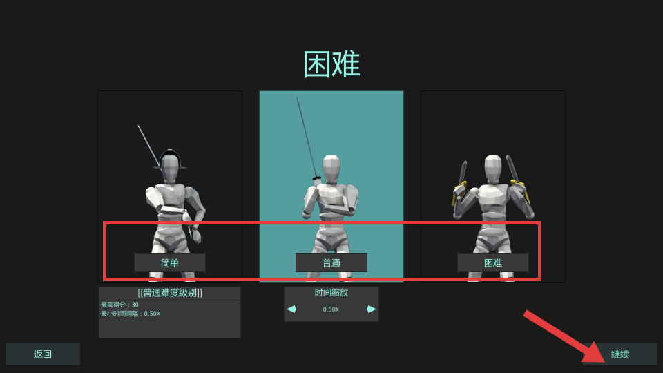 2、选择难度后,点击【继续】,进入战斗关卡。