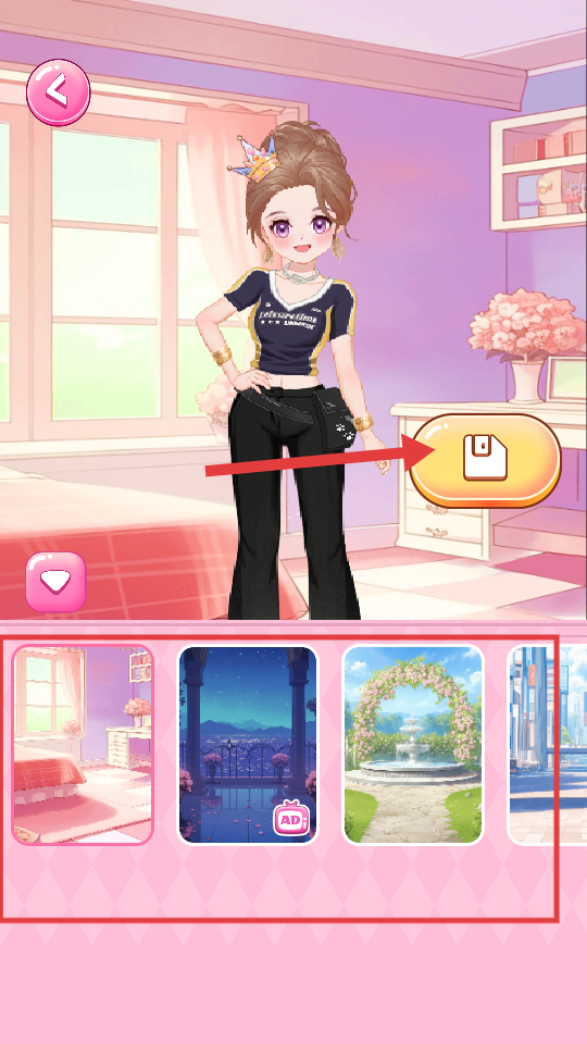 4、还可选择不同背景进行搭配,装扮完成后点击保存按钮,记录当前的装扮。