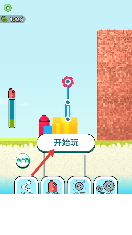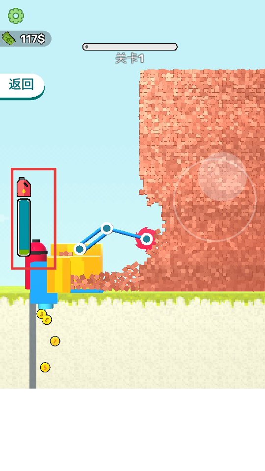 3、留意左侧燃料条,在燃料耗尽前尽可能切割方块,获取金币。