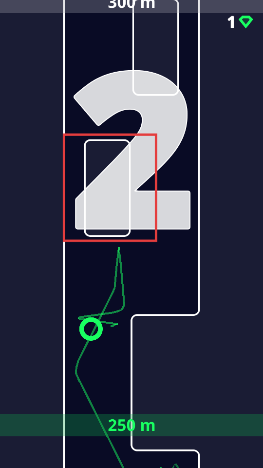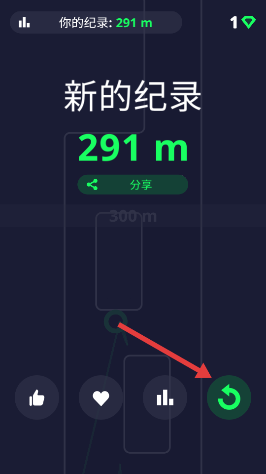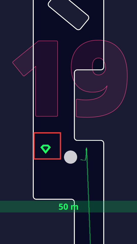 2、在移动时,收集绿色菱形道具,同时注意行进距离。