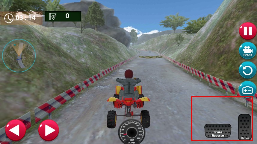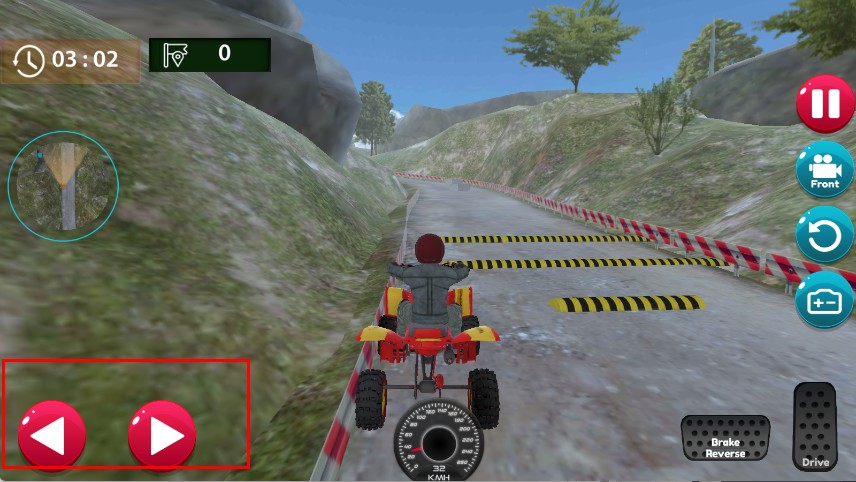 2、用左侧左右箭头控制方向,右侧【Drive】加速、【Brake-Reverse】刹车/倒车,操控摩托行驶。