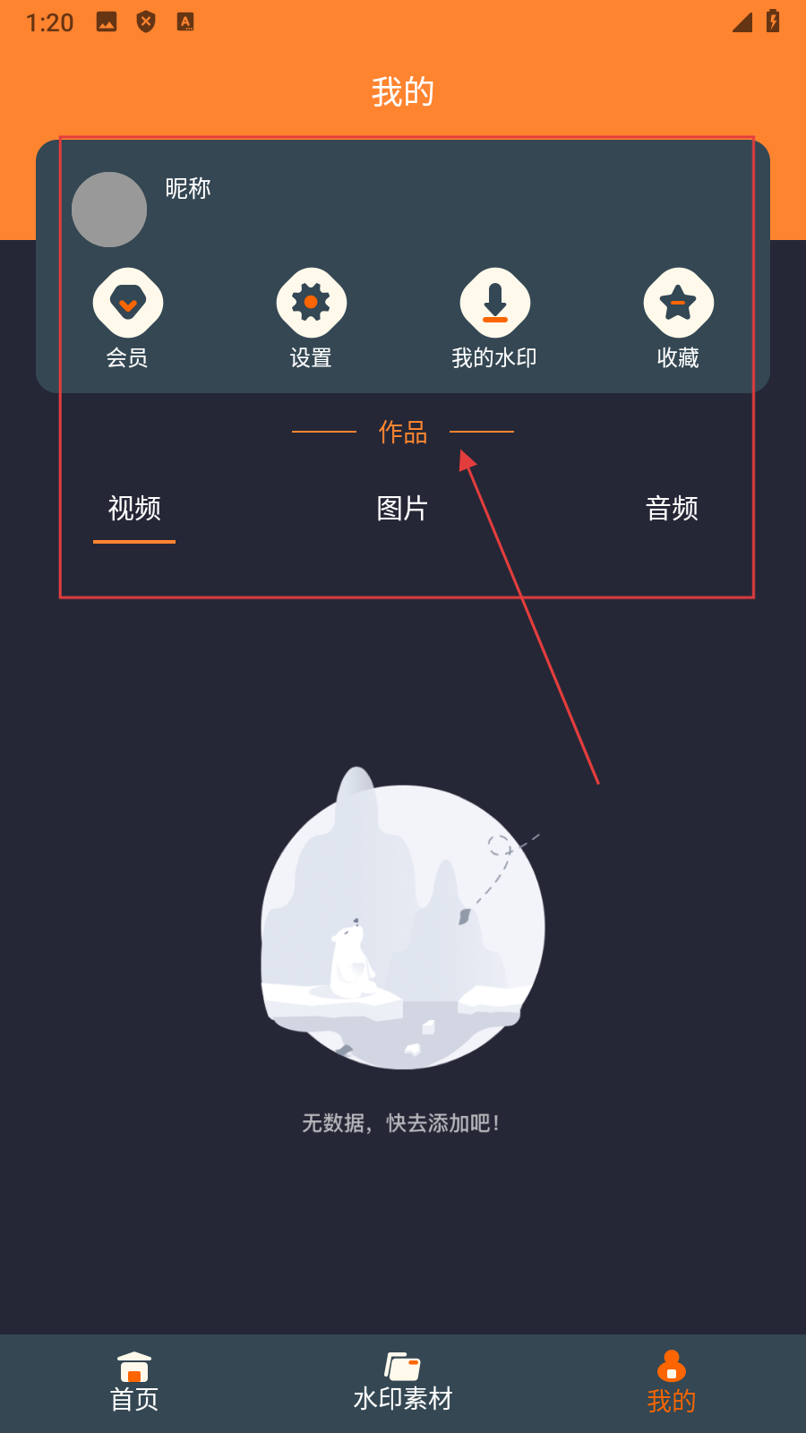 2、进入我的界面,可查看【会员、设置、我的水印图片、音频作品】等等,管理个人创作内容。
