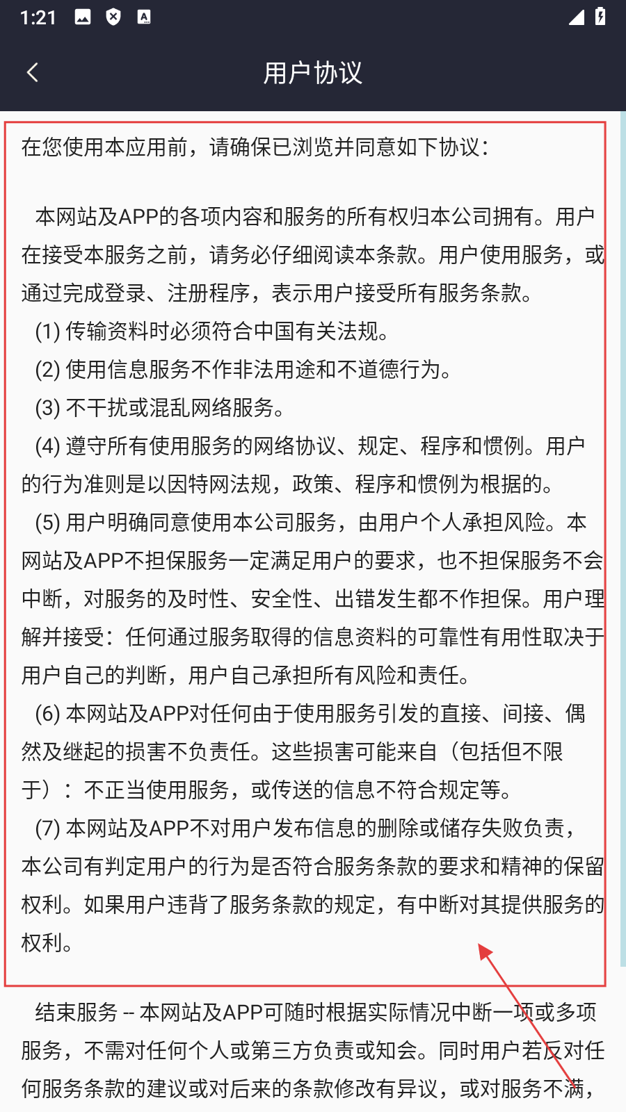 4、阅读用户协议,了解【使用应用的条款】,确保遵守后使用,明确应用的权利义务与服务规范。