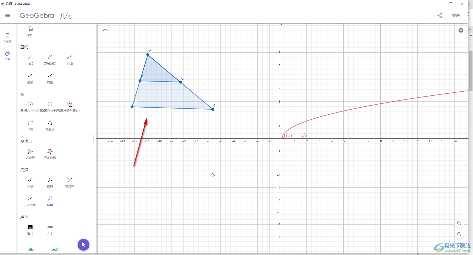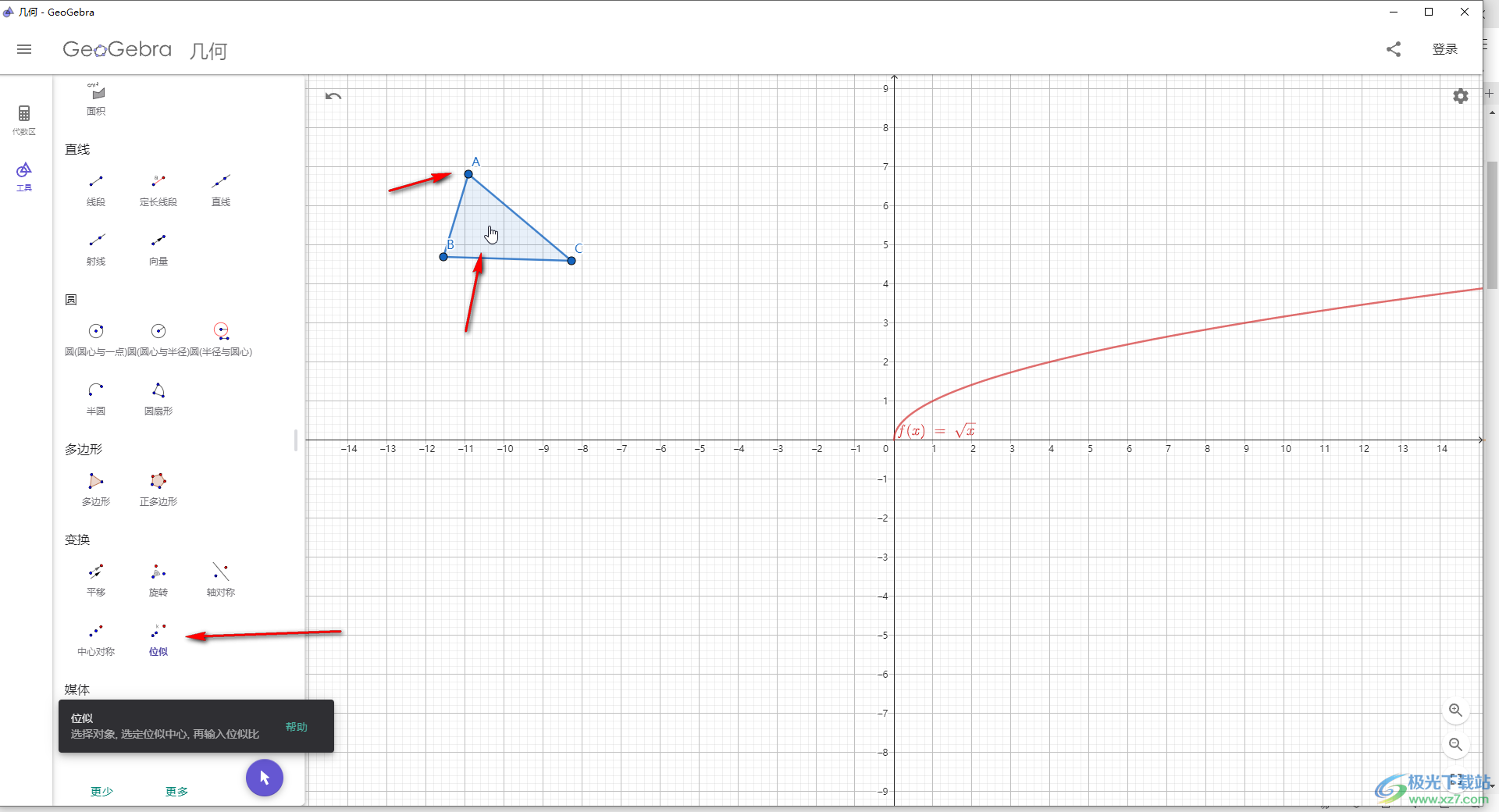 以上就是GeoGebra几何画板中放大或者缩小图像的方法教程的全部内容了。以上步骤操作起来都是非常简单的,小伙伴们可以打开自己的软件后一起动手操作起来,看看效果。