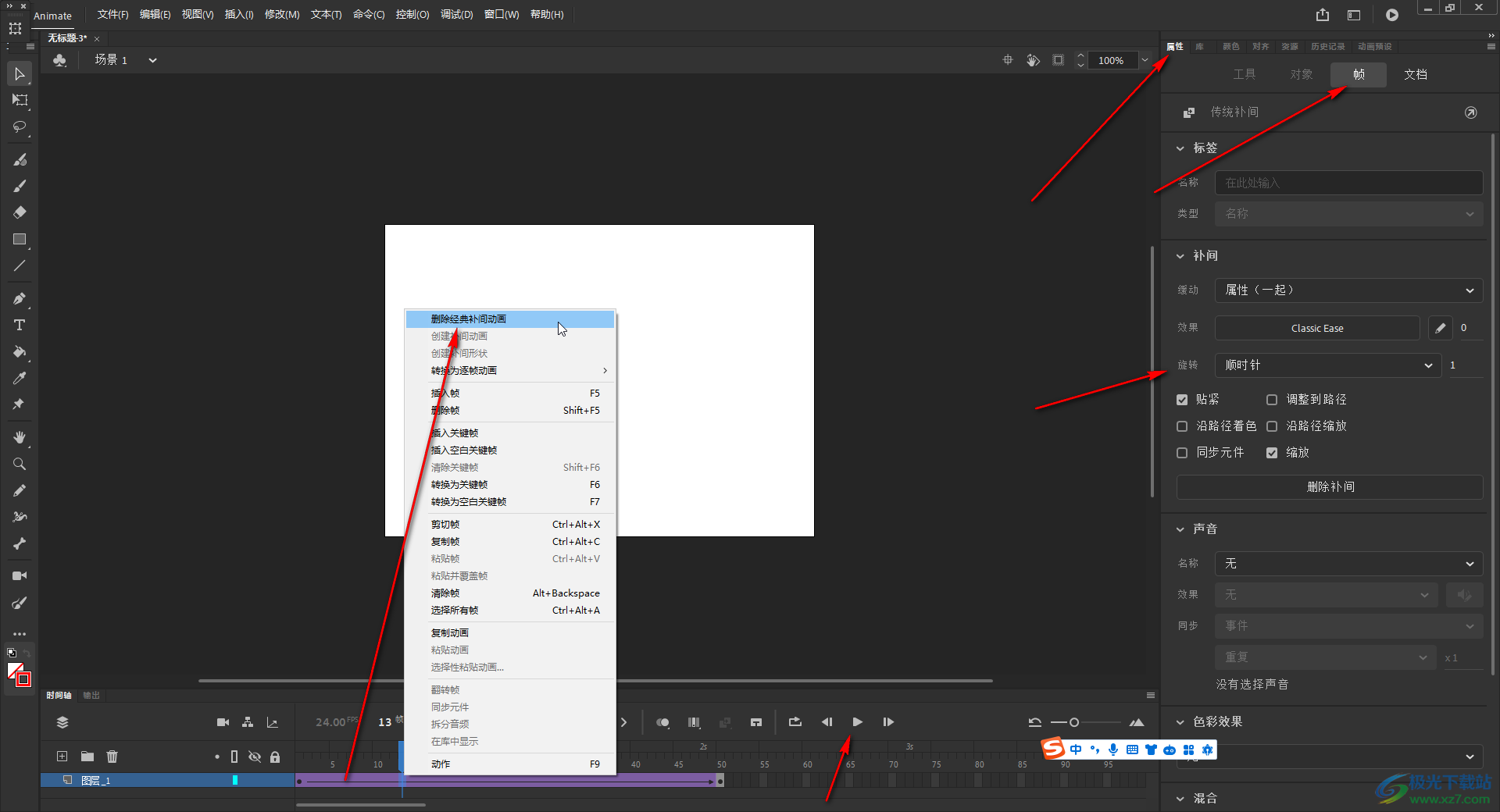 以上就是Adobe animate中制作旋转动画的方法教程的全部内容了。以上步骤操作起来都是非常简单的,小伙伴们可以打开自己的软件后一起动手操作起来,看看效果。
