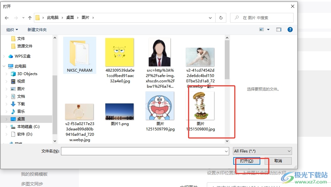 4.在打开的文件夹窗口中,用户选择图片选项后按下打开按钮即可解决问题