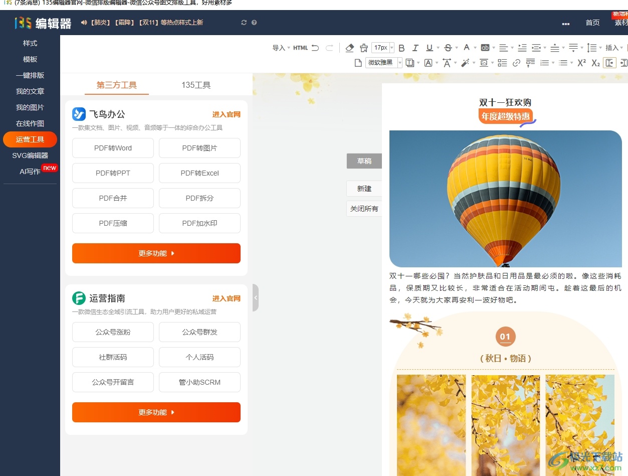 1.用户在电脑上打开135编辑器软件,并来到页面上点击右上角的头像信息