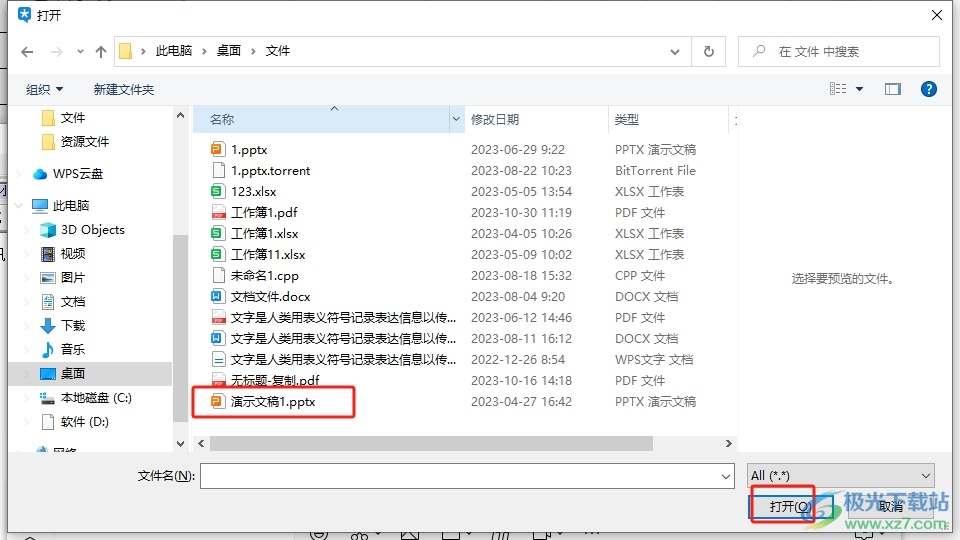 3.在打开的文件夹窗口中,用户勾选其中的文件后按下打开按钮即可