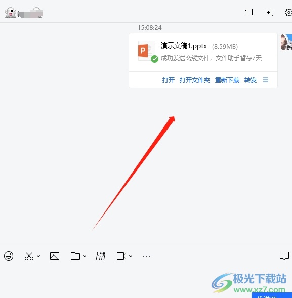 2.接着可以会在右侧弹出聊天界面,用户点击下方对话框中的打开文件按钮