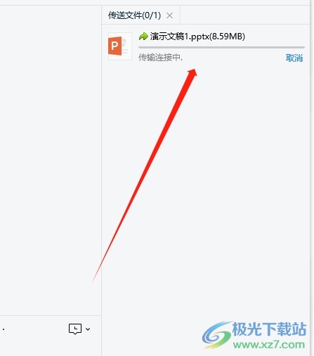 5.随后在右侧弹出传送文件板块,用户耐心等待一会儿就可以成功发送文件