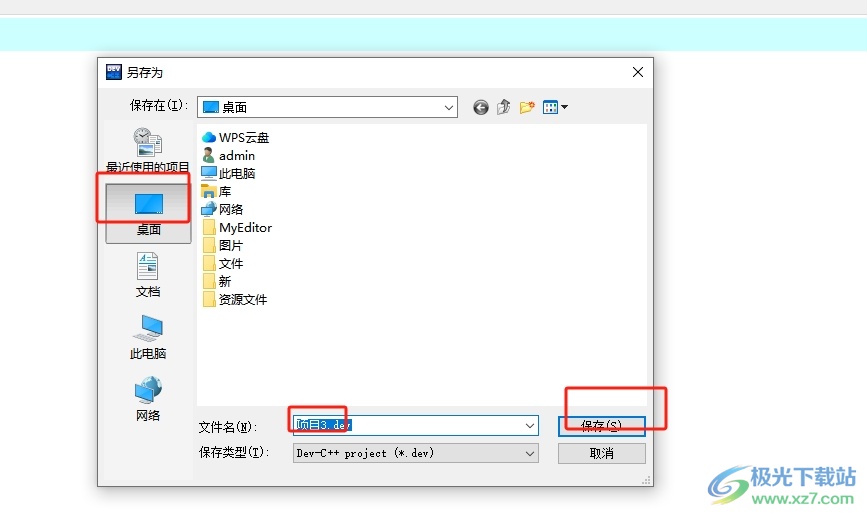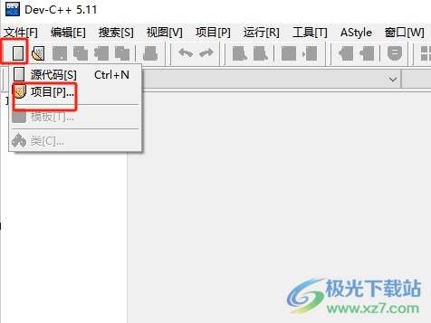 1.用户在电脑上打开dev c++软件,并来到编辑页面上点击新建选项,弹出下拉框后选择项目选项