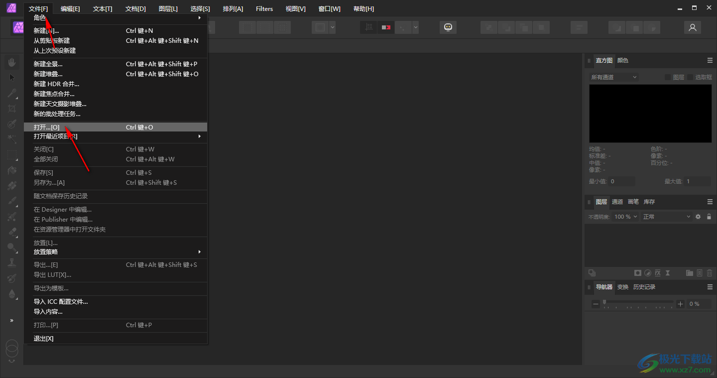 1.直接进入到Affinity Photo2中,点击【文件】选项和【打开】选项,将我们需要的图像添加进来。