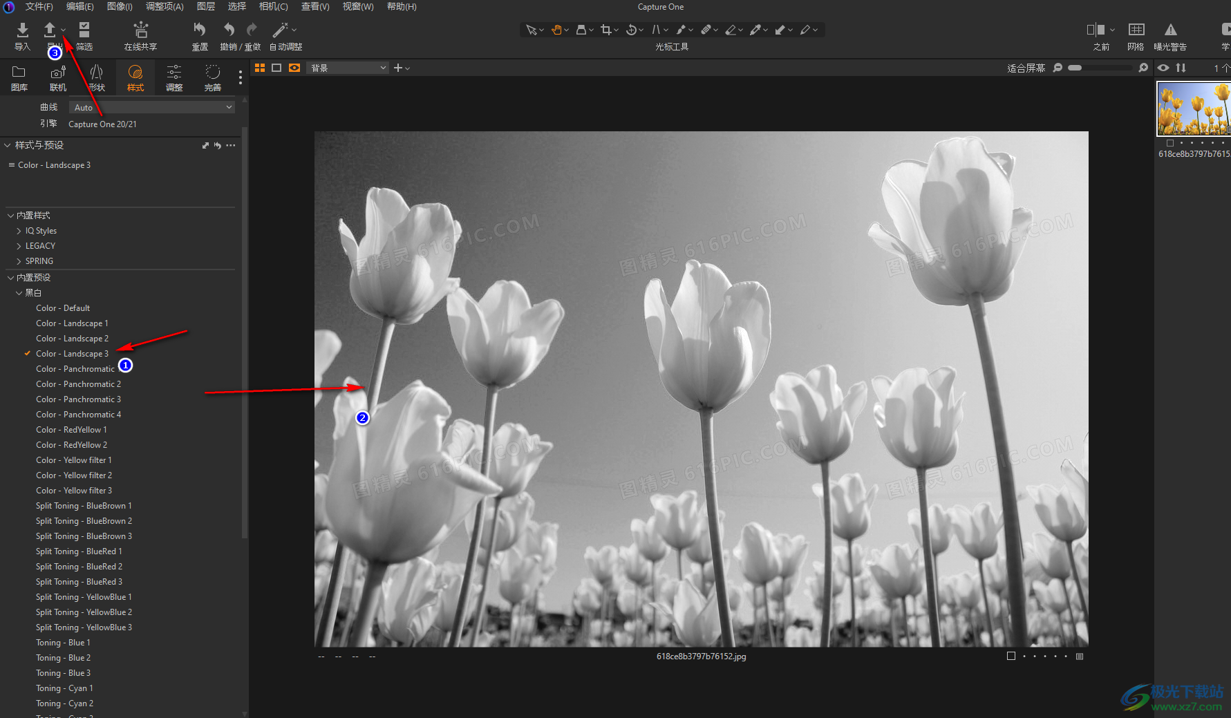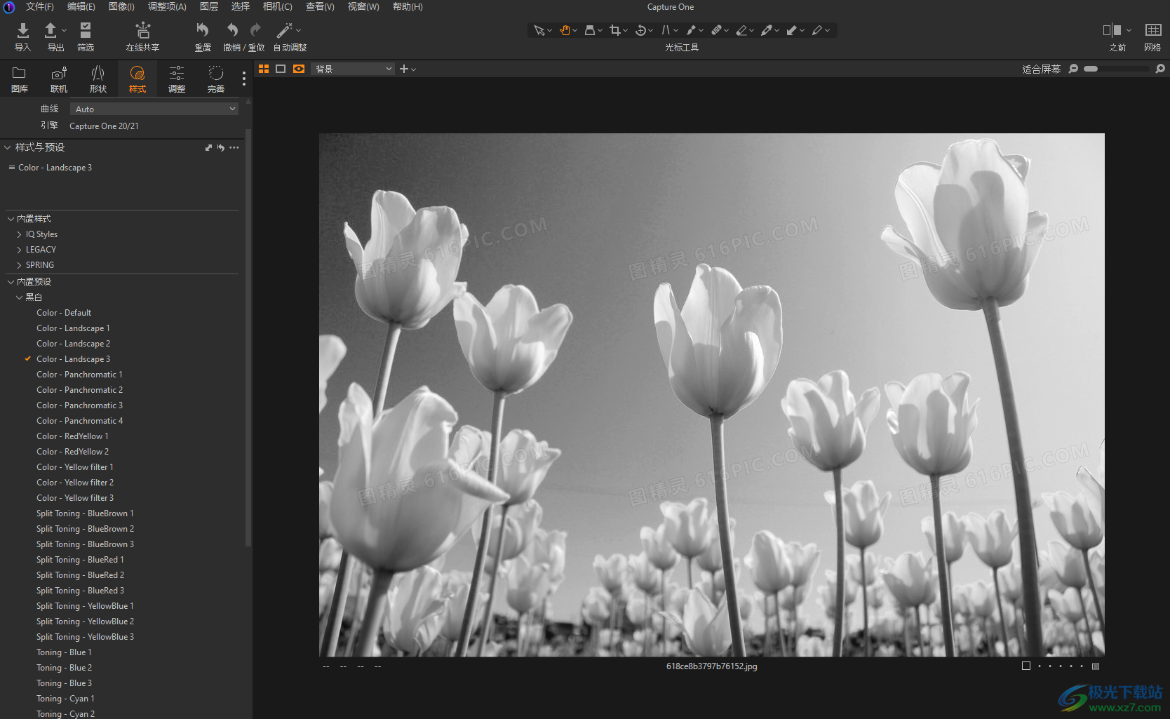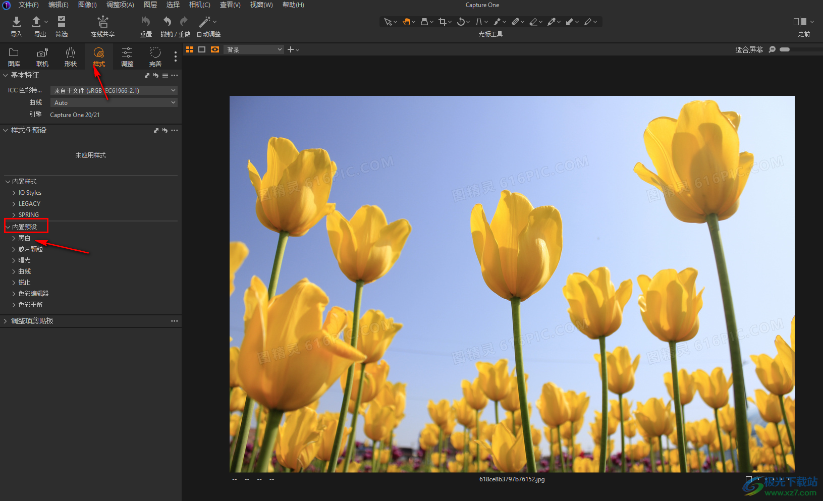 capture one中可以使用的编辑图片的工具十分的丰富,导致很多小伙伴在编辑的时候,不清楚哪些工具在什么地方,一般我们在进行图像处理的时候,会对图像的色调以及色彩进行相应的修改,比如当你想要将其中的图像进行黑色效果的设置,那么我们就可以通过在样式和预设的窗口下找到内置预设,之后即可找到黑白功能选项,将其设置成自己喜欢的黑白样式就好了,下方是关于如何使用capture one设置图像为黑白效果的具体操作方法,如果你需要的情况下可以看看方法教程,希望对大家有所帮助。