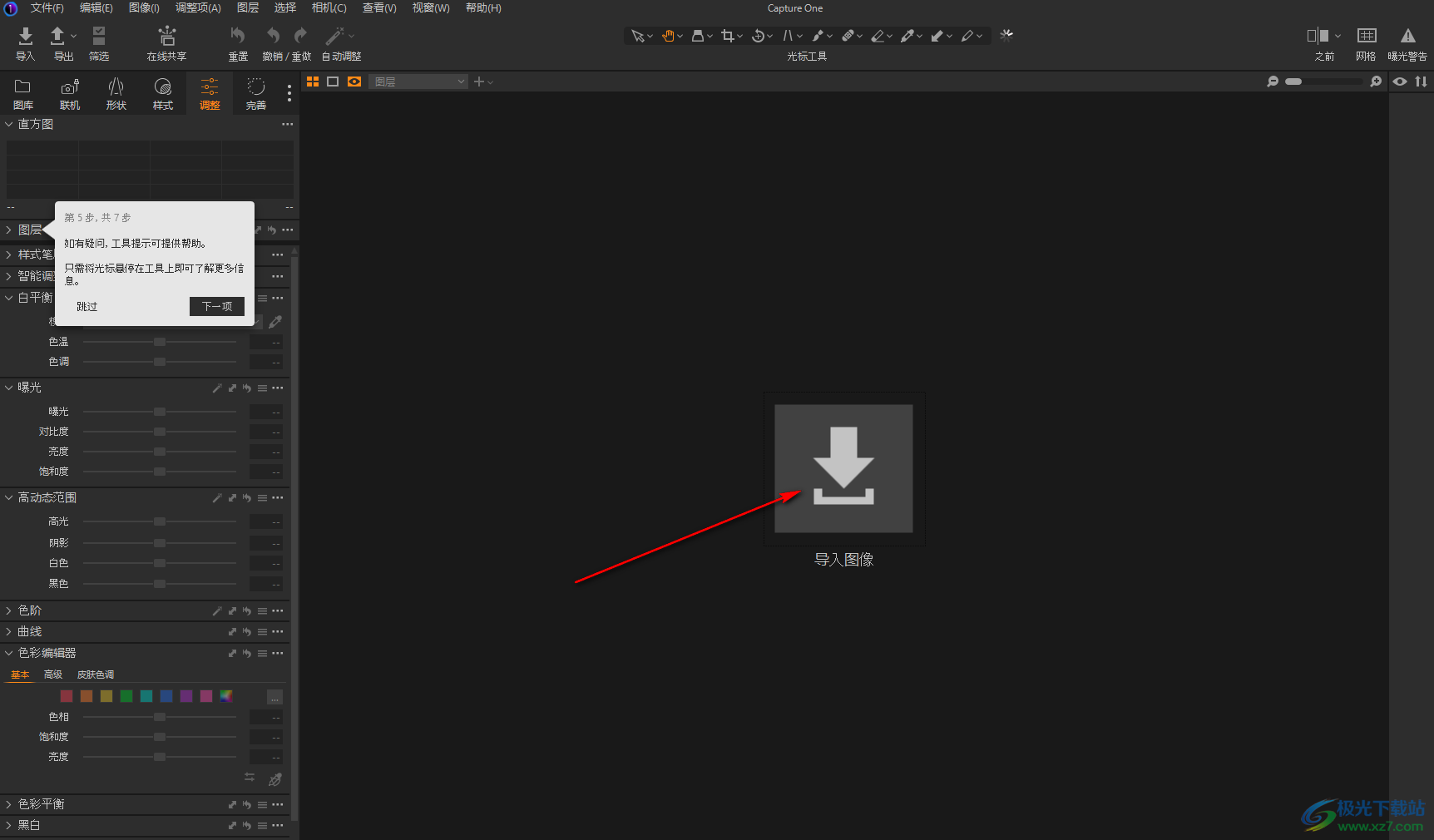 1.首先,我们需要将capture one点击打开,在页面上将导入图像按钮点击一下。