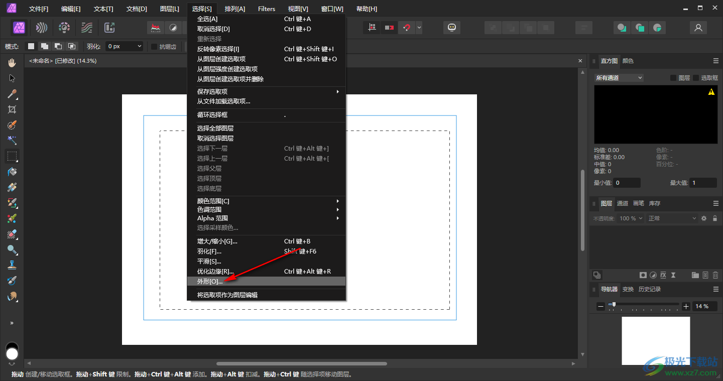 Affinity Photo是一款针对图像进行编辑的软件,可以直接将本地图片添加到Affinity Photo2中进行设置,也可以直接新建一个空白的文档进行编辑内容,有的小伙伴会在新建的文档中进行选区的设置,在空白的文档页面上进行框选出一个矩形虚线框,有小伙伴表示想要同时显示两个虚线框,那么就需要进入到外形的设置窗口中,调整一下虚线框的大小和扩边即可,下方是关于如何使用Affinity Photo2进行选区扩边的具体操作方法,如果你需要的情况下可以看看方法教程,希望对大家有所帮助。