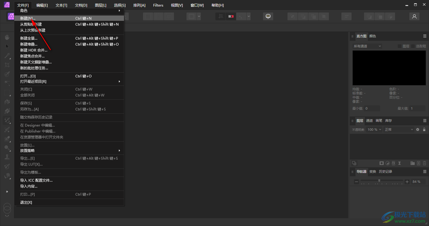 1.当我们进入到Affinity Photo2之后,点击【文件】-【新建】按钮,进行文档页面的新建设置。