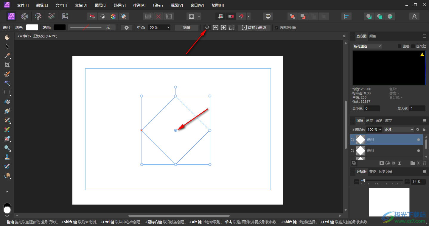 以上就是关于如何使用Affinity Photo2切换原点位置的具体操作方法,当你想要将一个图形的原点进行随意的更换,那么就可以通过启用变换原点功能进行操作就好了,可以随意的将原点移动到别人的位置,感兴趣的话可以操作试试。