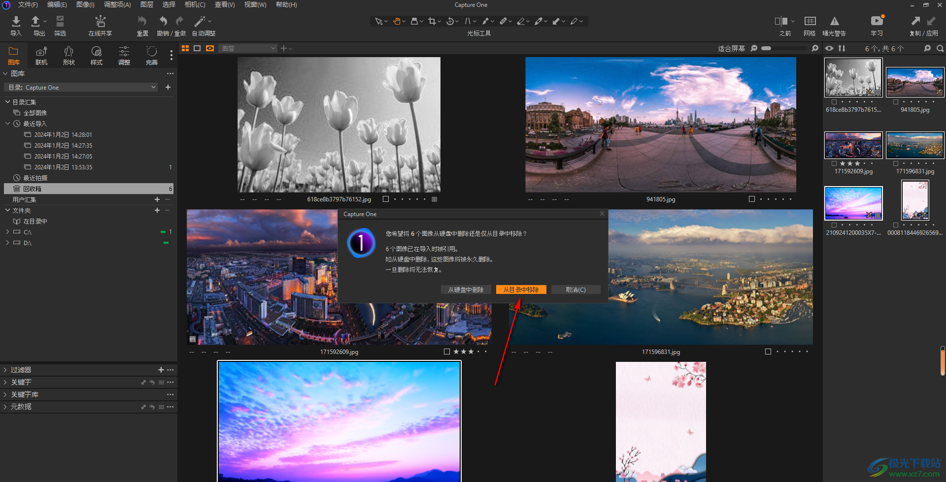 以上就是关于如何使用capture one删除回收箱的照片的具体操作方法,很多小伙伴遇到不能导入照片的这种情况,那么就可以按照以上的方法检查一下回收箱中是否还存在相关的照片,如果有,将其从目录中删除就好了,感兴趣的话可以操作试试。