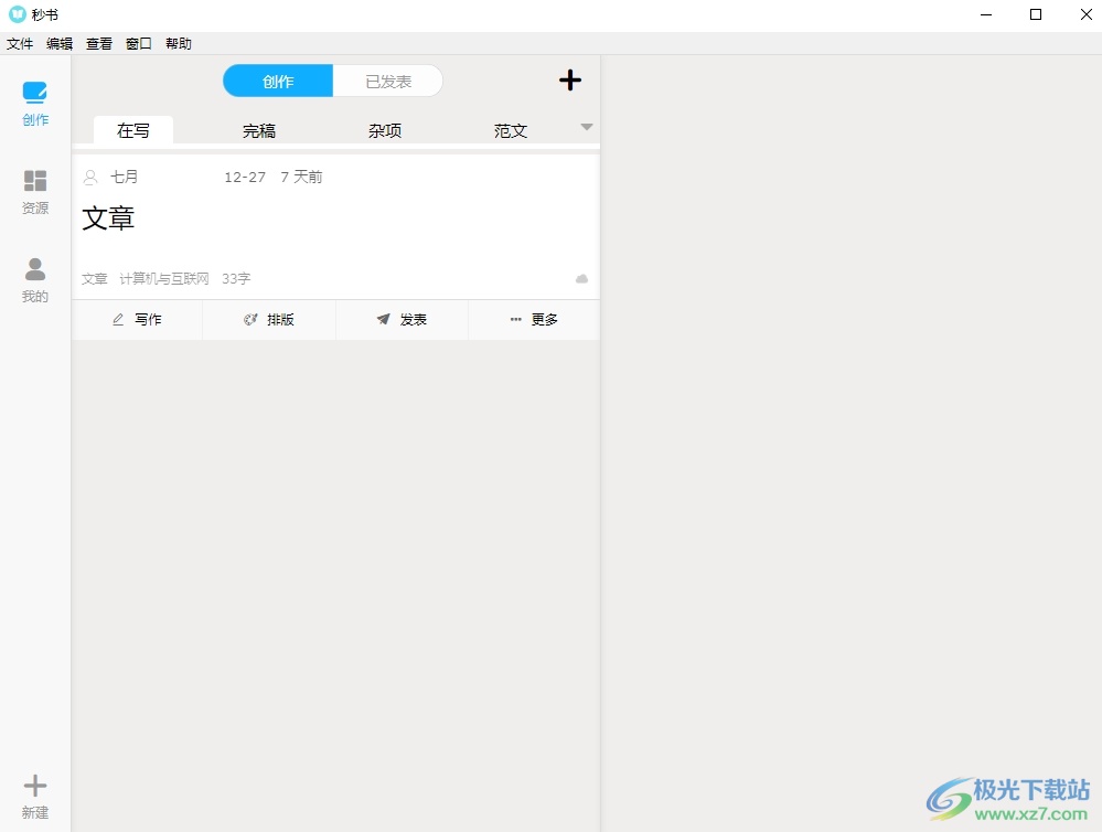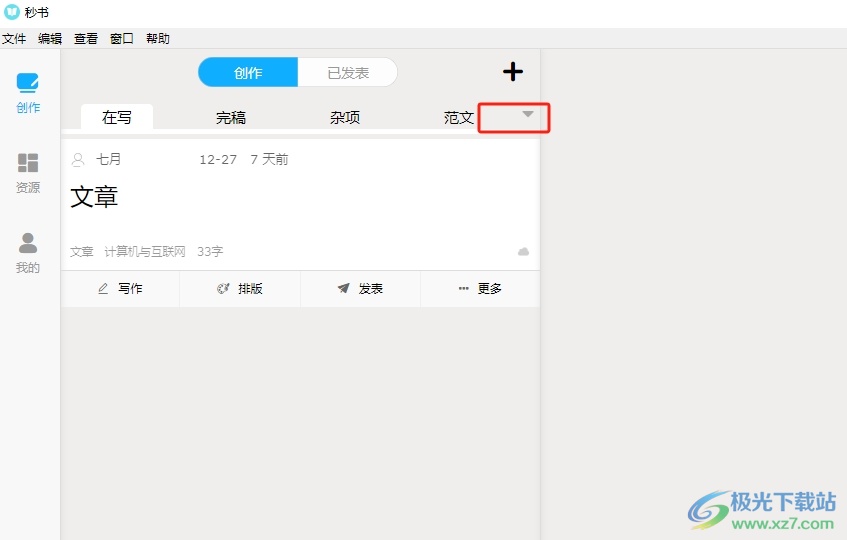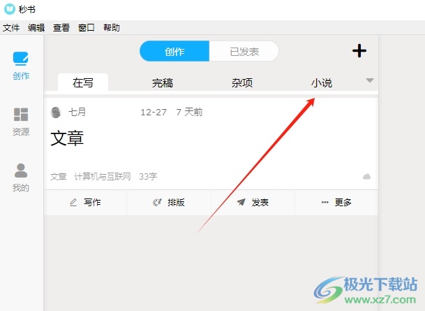 秒书是一款转为深度内容创作者打造的一款低门槛的高效写作、图文编辑工具,能够让用户创作出文章、小说、日记和工作文档等任何需要反复斟酌的内容,为用户带来了不错的使用体验,因此秒书软件吸引了许多的用户前来下载使用,当用户在使用秒书软件时,可以根据自己的文章写作类型来添加新的分类标签,但是有用户不知道从哪添加实现,其实这个问题用户在主页上点击分来标签的下拉箭头,接着在弹出来的窗口中点击添加并输入新的标签内容即可解决问题,那么接下来就让小编来向大家分享一下秒书添加新的文章分类的方法教程吧,希望用户能够从中获取到有用的经验。