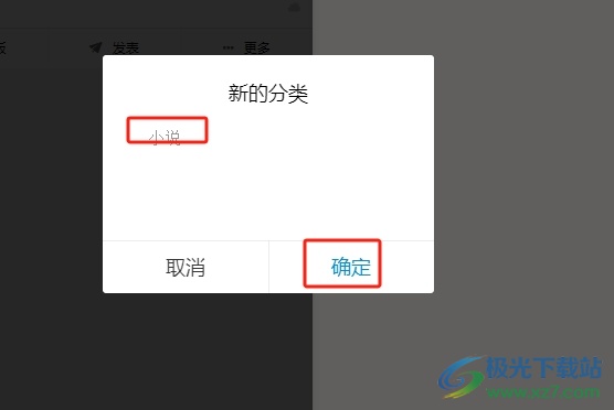 3.在弹出来的新的分类窗口中,用户输入常用的文章分类类型后,按下右下角的确定按钮