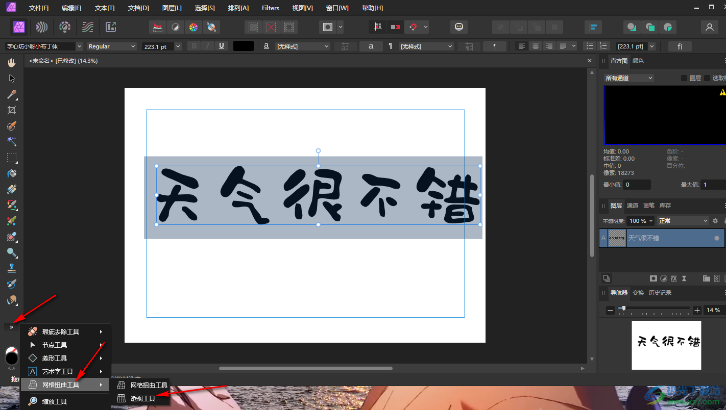 以上就是关于如何使用Affinity Photo2设置文字透视的具体操作方法,我们在进行文字编辑的过程中,常常需要进行文字排版设计,那么就可以按照以上的方法教程对文字进行透视的设计即可,感兴趣的话可以操作试试。