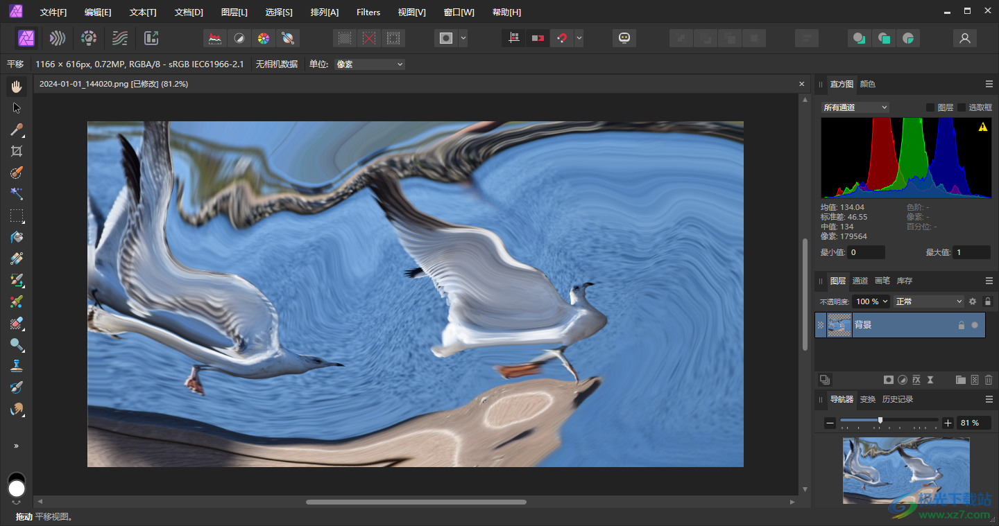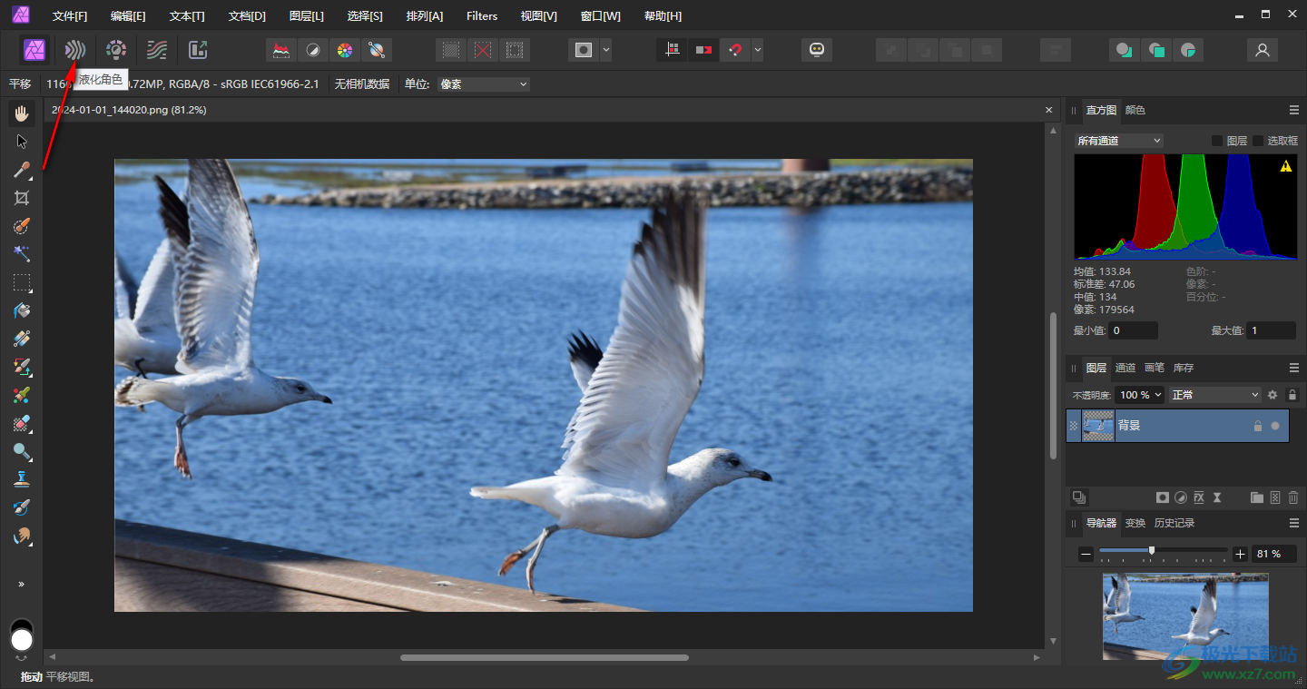 Affinity Photo是一款强大的制作图片的软件,这款设计软件有很多实用的功能可以使用,当你需要对图片进行液化处理的时候,那么我们就可以通过液化工具对图片上的元素进行随意的修改,液化工具可以让我们的图片进行设计眩晕的效果,以及波浪效果等,只需要用鼠标进行随意的调节成自己需要的样式就好了,而液化工具只需要在工具栏中就可以将其找到进行使用,下方是关于如何使用Affinity Photo使用液化角色的具体操作方法,如果你需要的情况下可以看看方法教程,希望对大家有所帮助。