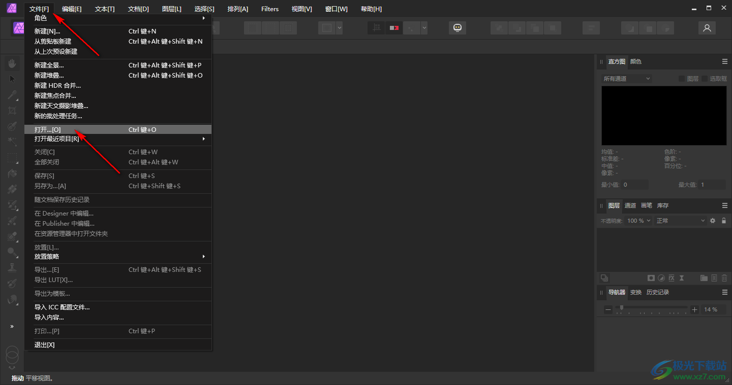 1.首先,我们需要进入到Affinity Photo中,点击页面左侧上方的【文件】-【打开】,将图像添加进来。