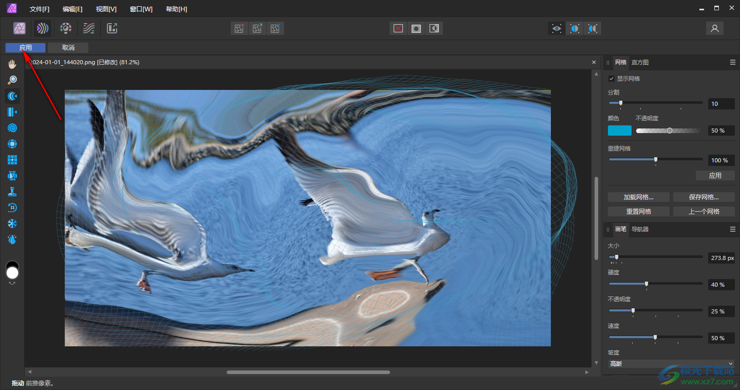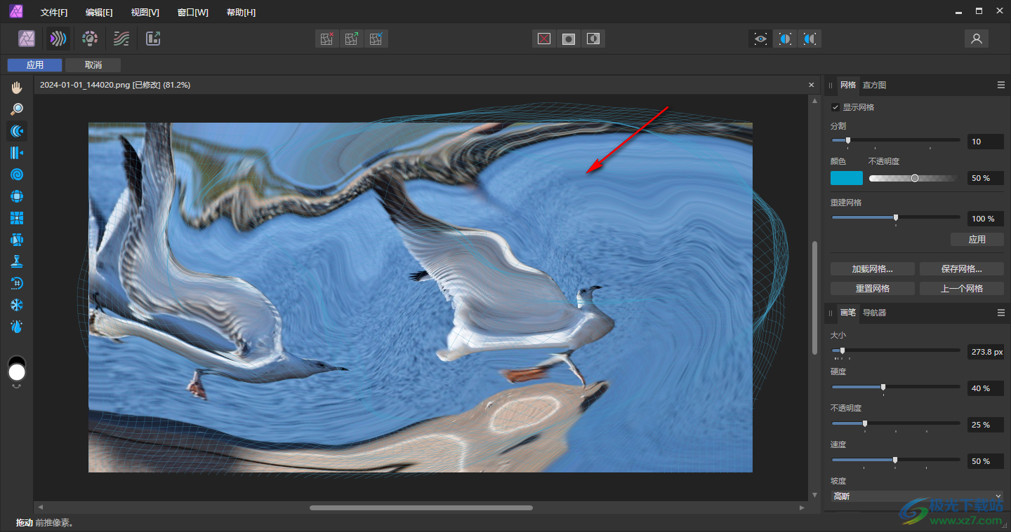 4.随后,我们可以用鼠标左键随意在图片上进行移动、涂抹等,那么就会形成一个眩晕的效果,当然你也可以弄成一种波浪的效果也是可以的。