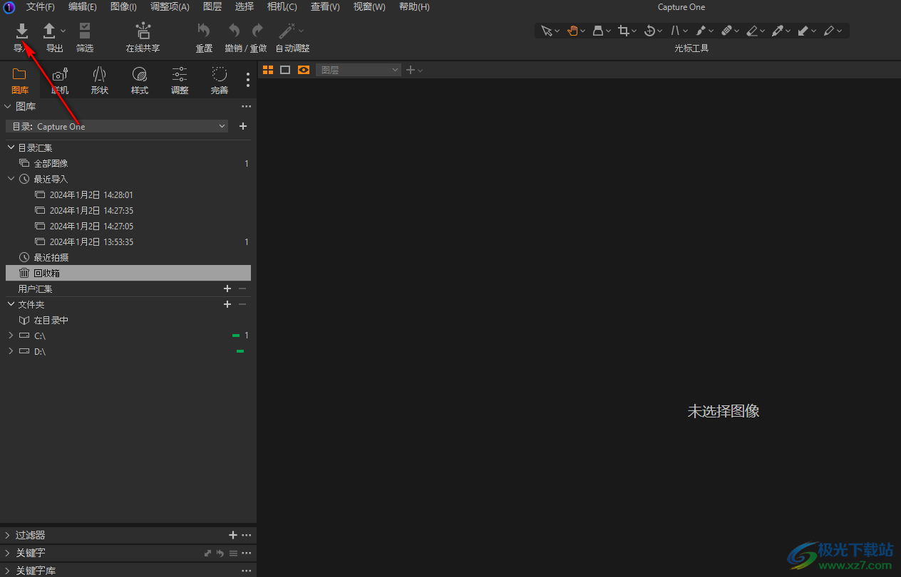 1.首先,我们需要将capture one点击打开,进入到页面之后,将左侧上方的【导入】按钮进行点击。