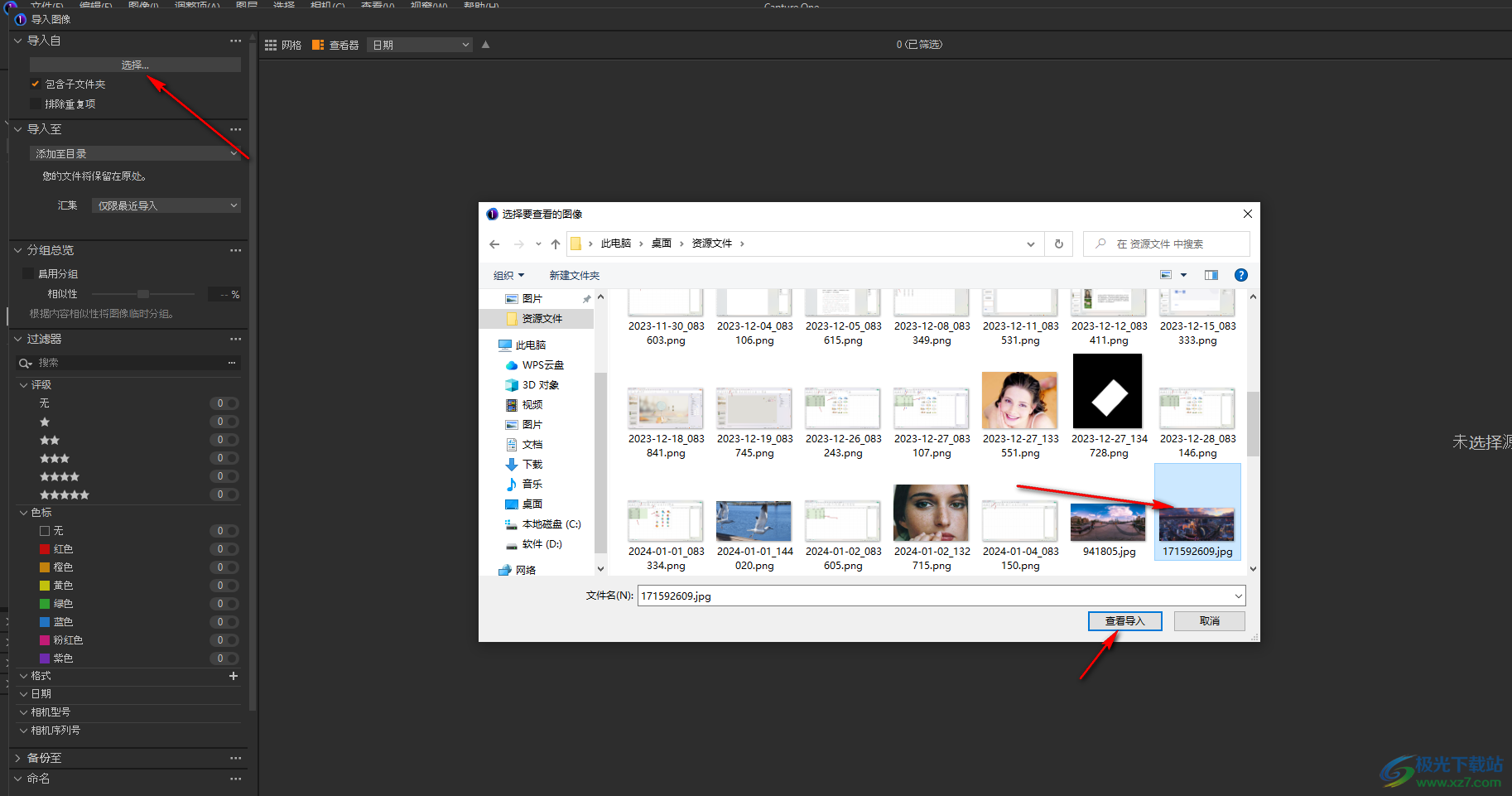 2.这时,我们即可在页面的左侧上方将【导入自】的【选择】按钮进行点击,之后在打开的窗口中选择自己需要的图像进行添加。