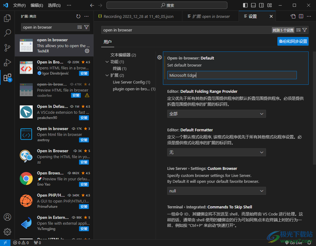 有的小伙伴是专门进行编译的,会进行各种代码的编辑,而多数小伙伴选择的代码编辑器是visual studio Code编辑器,这款代码编辑器有着十分高级的编辑页面,以及非常智能的和强大的应用商店,可以进行多种插件的下载安装,有的小伙伴在使用Visual Studio Code进行调试的时候,想要打开默认的浏览器是edge浏览器,或者是谷歌浏览器,那么我们就可以首先安装一个可以修改默认浏览器的插件即可,下方是关于如何使用Visual Studio Code设置默认浏览器的具体操作方法,如果你需要的情况下可以看看方法教程,希望对大家有所帮助。
