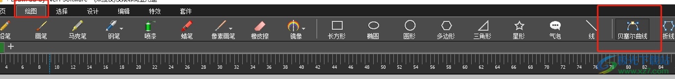 2.接着进入到新项目的编辑页面上,用户根据需求点击菜单栏中的绘图选项,将会显示出相关的选项卡,用户选择其中的贝塞尔曲线选项