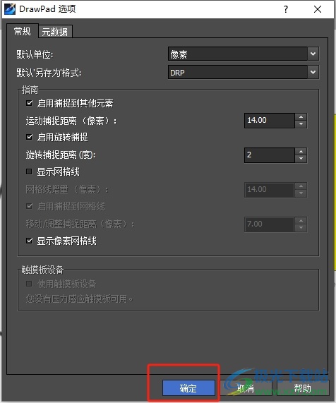 3.进入到DrawPad选项窗口中,用户需要把选项卡切换到常规选项卡上
