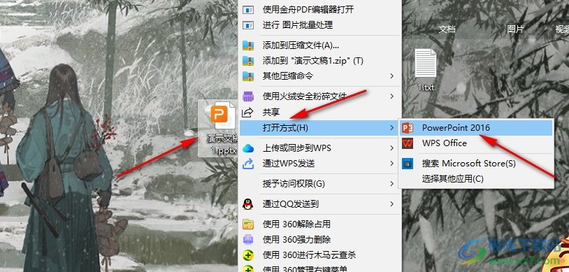 1、第一步,我们右键单击一个演示文稿,然后先点击打开方式选项,再在菜单列表中选择“powerpoint”选项